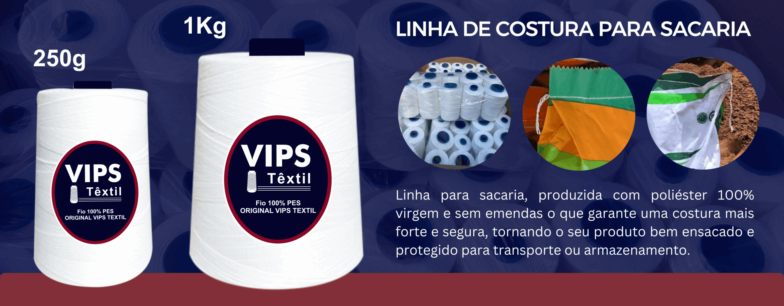 Linha para sacaria, produzida com poliéster 100% virgem e sem emendas